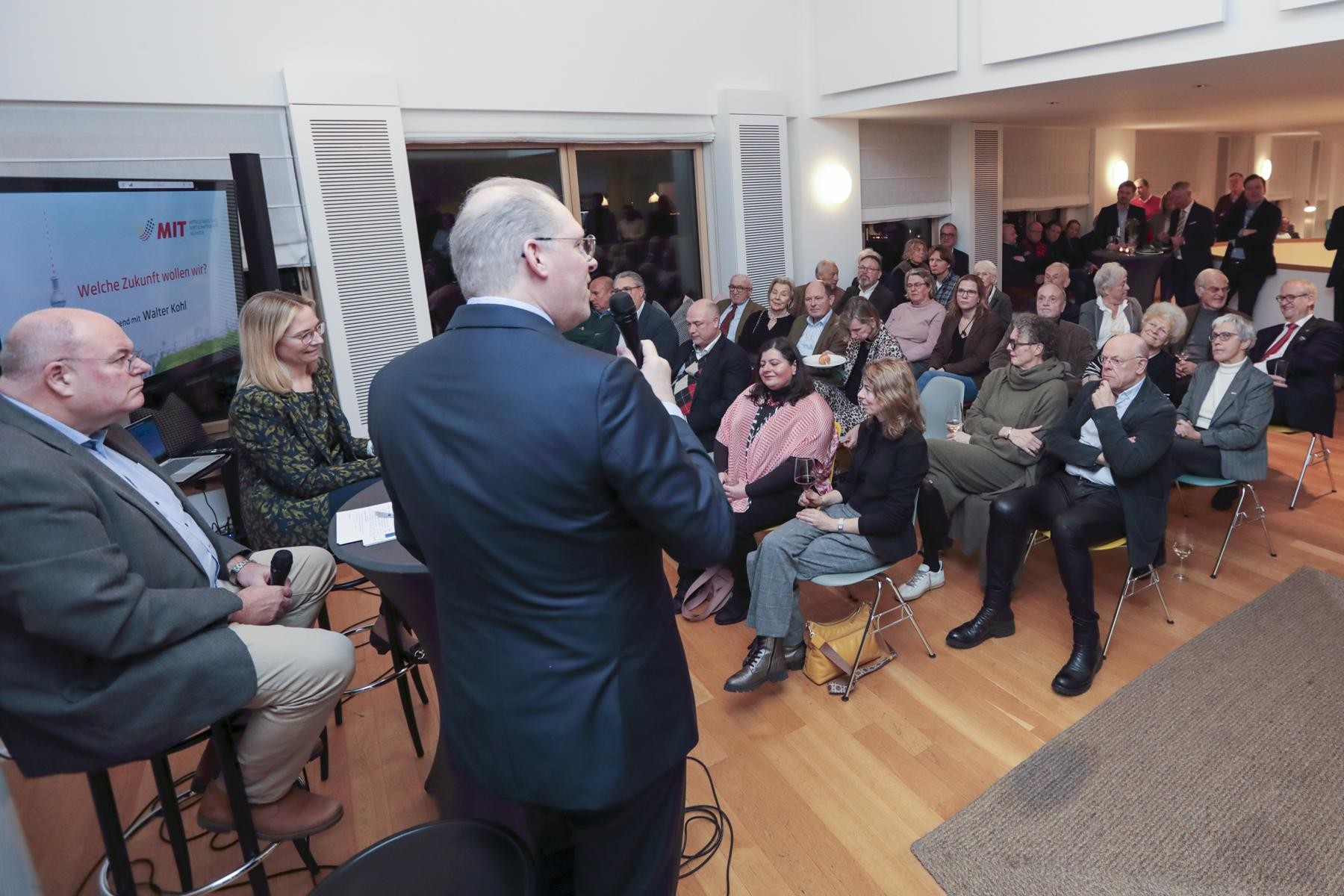 Im Rahmen eines fast zweistündigen Dialogs – der sich laut Pressemitteilung zu einem echten „Trialog“ mit dem Publikum entwickelte – stellte sich Kohl den Fragen des MIT-Vorstands und der zahlreichen Gäste. Moderiert wurde die Veranstaltung von den Vorstandsmitgliedern Saskia Zahlten und Peter Börgel, Vorsitzender der MIT Münster.